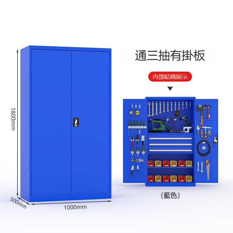 產品名稱 : 藍色通體三抽高承重工具櫃/移動工具車/車間重型櫃/五金工具箱(有掛板、不含掛勾)