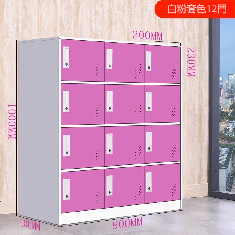 產品名稱 : 粉色十二門學校教室學生幼稚園書包櫃/收納櫃/儲物櫃