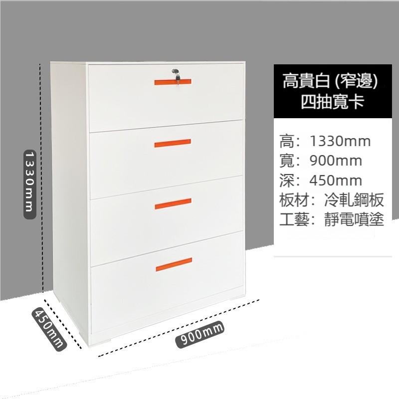 簡約設計,高效存儲!這款白色(窄邊)四抽寬卡文件櫃以其簡約的設計和高效的存儲功能,成為現代辦公環境的理想選擇。專為大量文件存儲而設計,確保您的辦公空間整潔有序。
