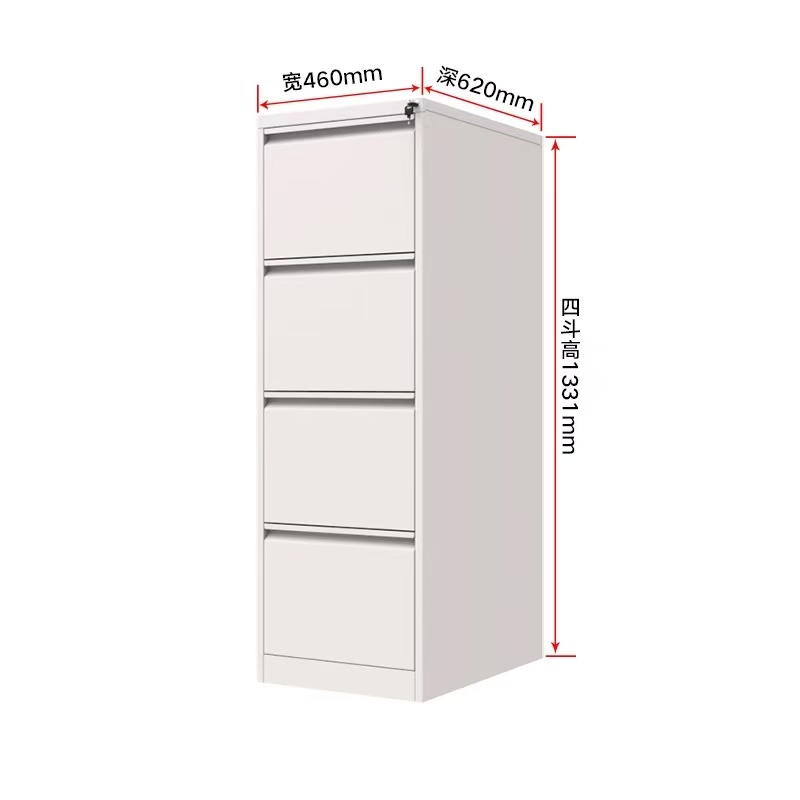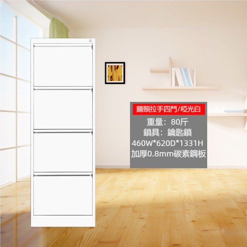 優雅設計,高效存儲!這款鋼制鵝頸拉手四抽屜文件櫃結合了優雅的外觀和實用的功能,是辦公室文件存儲的理想選擇。專為A4紙張設計,確保您的文件整齊有序。