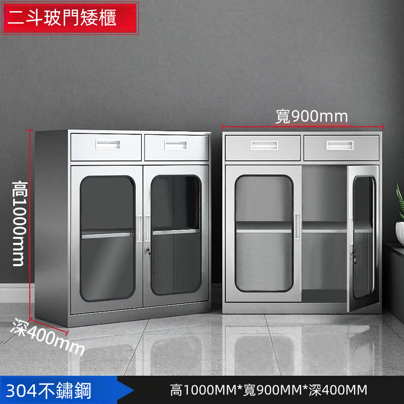 產品名稱:不鏽鋼二斗玻璃門矮櫃/辦公室文件櫃/資料櫃/檔案櫃