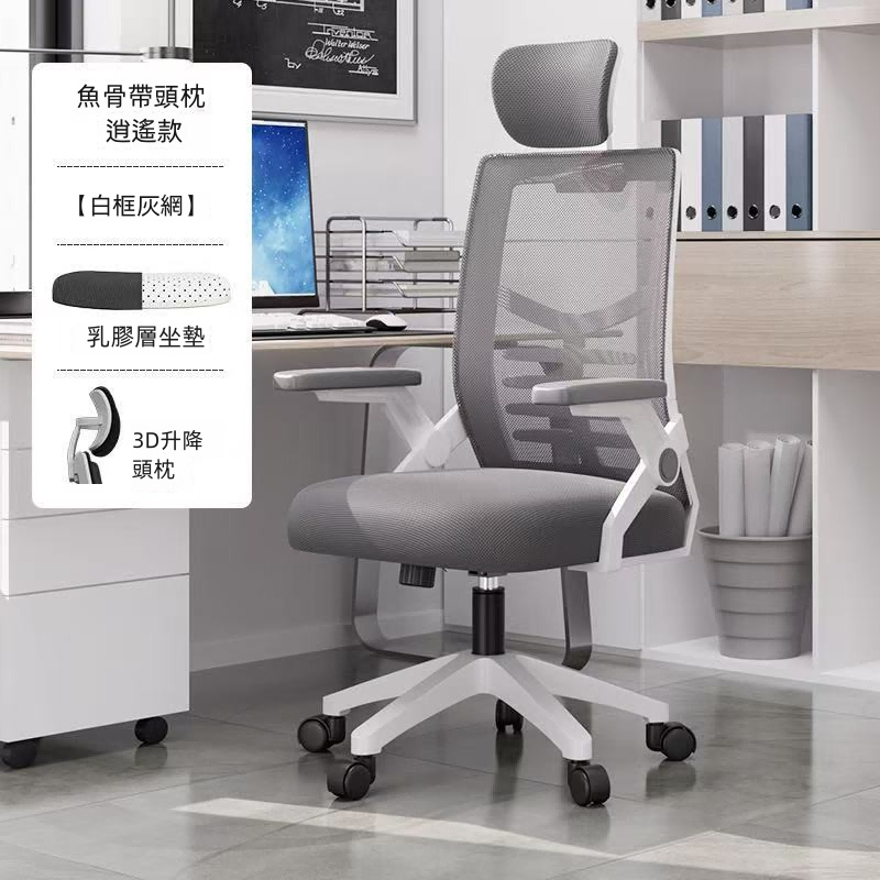 (免費送貨包安裝)灰網帶頭枕乳膠坐墊逍遙款辦公椅子/電腦椅/會議室椅/職員椅 CC-A236